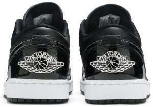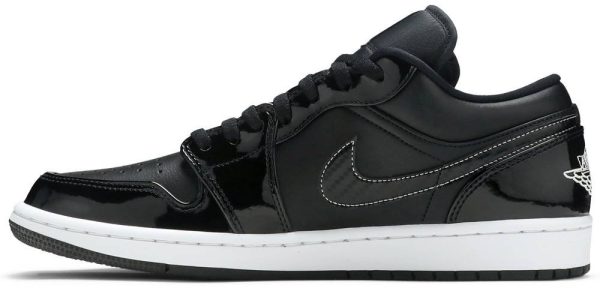 The Air Jordan 1 Low ‘All Star 2021’ celebrates the NBA’s midseason showcase with a sleek colorway of the classic silhouette. The black leather upper is enlivened with shiny tonal patent leather overlays at the toe and heel. A matching patent leather Swoosh is accented with white contrast stitching . while an embroidered Wings logo adorns the back heel. The sneaker rides on a standard rubber cupsole . featuring a foam wedge and encapsulated Nike Air for enhanced cushioning.
