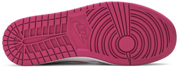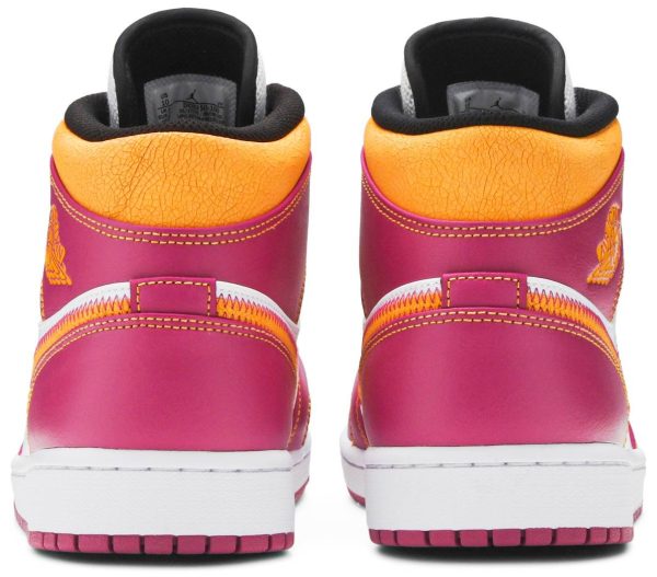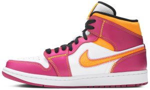 The Jordan Brand created the Air Jordan 1 Mid Dia de los Muertos to honor the famous Mexican holiday . the Day of the Dead. The design utilizes color and graphic patterns to pay homage to Mexican customs. The Air Jordan 1 Mid Dia de los Muertos references the traditional flowers that grow all over Mexico. The shoe features a three-color palette of yellow . fuchsia . and white. On both sides of the shoe . there is the classic Nike Swoosh logo. The logo . however . is accentuated by textured stitching that gives these sneakers a unique look. On the toe . text reading ?¡ãPara Mi?¡À . or ?¡ãFor Me?¡À in English . is printed in yellow. A white midsole and fuchsia outsole completes the design.