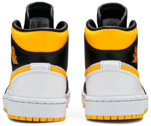 Air Jordan 1 Mid SE ‘White Laser Orange’ features unconventional color blocking on the classic silhouette. The sneaker’s white leather base is contrasted by black leather on the forefoot overlay . eyestay and collar flap . stamped with the Wings logo in Laser Orange. The same citrus hue is repeated on the padded collar . Swoosh and rubber outsole. Waxed flat laces give the shoe a premium touch.