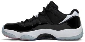 Released in June of 2014 . the Air Jordan 11 Retro Low ‘Infrared 23’ features a black mesh upper with black patent leather . but with the addition of a ‘cement’ panel around the heel. The sneaker also features infrared accents . a white midsole . and an ice blue translucent outsole.