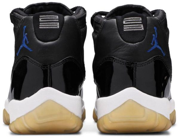 This Air Jordan 11 Retro is a new colorway from the originals in 1995 . and celebrates Michael Jordan’s performance in the movie Space Jam (1996). This colorway was worn by MJ in the movie against the Monstars . featuring a ballistic black nylon upper with the signature patent leather mudguard and Varsity Royal accents on the Jumpman logo at the heel. MJ also laced this colorway up on the court when he came back from baseball in 1995-1996 for a few games.