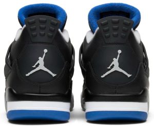 The Air Jordan 4 Retro ‘Motorsports Alternate’ released in 2017 alongside the mostly white ‘Motorsport’ colorway . inspired by MJ’s motorcycle racing team and modeled after a hyper-limited colorway gifted to the team’s 16 members back in 2006. This pair features a black leather upper with contrasting Matte Silver detailing on the molded eyelets . collar lining and Jumpman heel logo. A second Jumpman icon graces the woven tongue tag in Game Royal. A polyurethane midsole with visible Air cushioning anchors the classic mid-top silhouette.