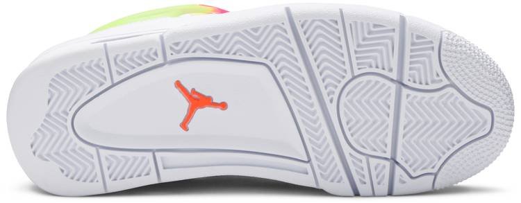 Air Jordan 4 Retro GS ‘Lemon Venom’ updates Tinker Hatfield’s 1989 design with candy-bright accents. The white leather upper is treated to increased ventilation . thanks to open quarter panels covered in pink netting. The same vibrant hue is repeated on the molded eyelets and heel tab . embellished with Jumpman branding. Contrasting pops of Lemon Venom land on the semi-translucent wings . forefoot overlay and tongue tag.