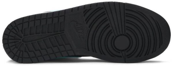 The Air Jordan 1 Mid ?¡ãGrey/Aqua?¡À incorporates both muted and bold hues of color on Michael Jordan’s first signature shoe in mid-top height. This ?¡ãGrey/Aqua?¡À colorway features the combination of black . Smoke . and Aurora Green hues . which evokes a tangible ?¡ãTiffany?¡À vibe seen on the popular Nike SB Dunk series. The upper displays a black leather base of the perforated toe and mid-panel. Contrasting grey leather overlays can be found on the forefoot . eyelets . collar . and heel. Aqua tumbled leather Swoosh detailing dots the mid-panel and underlay of the collar. Black ?¡ãWings?¡À branding appears on the Smoke leather overlay on the collar. Additional Aqua accenting is visible on the Jumpman logo on the black nylon tongue tab.