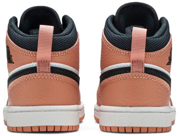 Made for little kids . the Air Jordan 1 Mid PS ‘Pink Quartz’ applies pastel-hued tumbled leather overlays to a smooth white leather base . complete with perforated detailing on the toe box and a signature Swoosh in contrasting black. An added pull tab at the heel delivers easy on and off . while a padded mesh collar provides a comfortable fit around the ankle. The mid-top rides on a durable rubber cupsole with encapsulated Air cushioning in the heel.