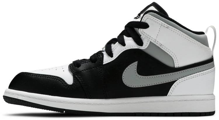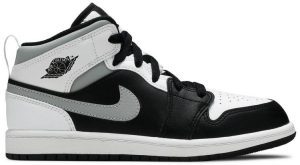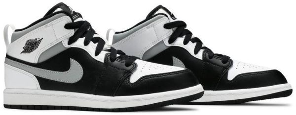 The Air Jordan 1 Mid PS ?¡ãWhite Shadow?¡À is the preschool sizing of Michael Jordan’s coveted first signature shoe in an easy-to-style colorway. The ?¡ãWhite Shadow?¡À appears on the Jordan 1 Mid silhoutte . one of the most popular looks in Jordan Brand’s line. Design details include buttery black leather on the toe cap . forefoot . and mid-panel. Contrasting white leather can be found on the perforated toe box . middle eyelet panel . collar . and heel. Branding appears in the form of a grey leather Swoosh on either side . a black ?¡ãWings’?¡À emblem on the collar . and white Jumpman on the tongue tag sewn onto the white nylon tongue. The white pull tab on the heel is a helpful design that makes wearing and taking off the shoe a breeze.