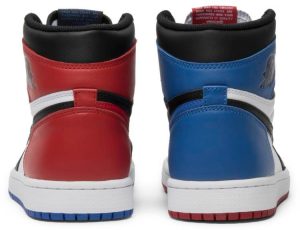 In 2016 . Nike combined three original Air Jordan 1 colorways (‘Bred/Banned .’ ‘Chicago .’ and ‘Royal’) into one new colorway . the Air Jordan 1 Retro High OG ‘Top 3′. The sneaker comes in mismatched’ color panels and outsoles while staying true to the original design by featuring the ‘Wings’ logo on the ankle and Nike Air branding on the insole and tongue. ‘Top 3’ also nods to Jordan being drafted third overall in the 1984 NBA Draft.