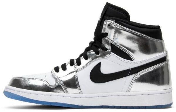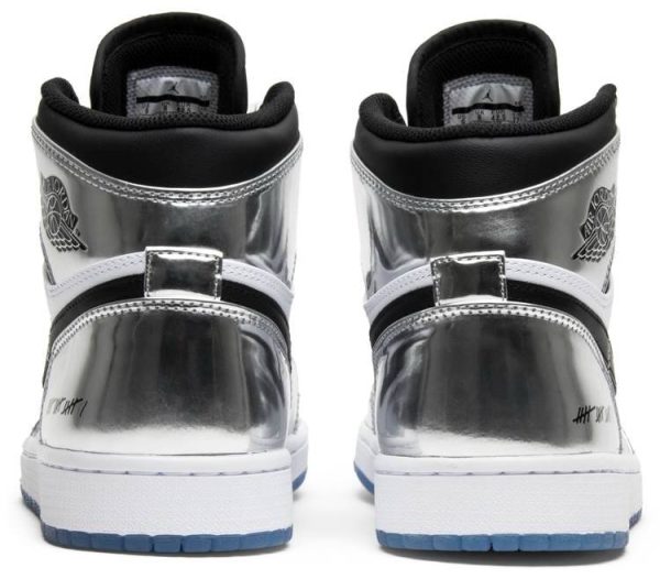 This Air Jordan 1 Retro High ‘Pass the Torch’ is a tribute to San Antonio Spurs forward Kawhi Leonard and his MVP performance in the 2014 NBA Finals. It features a metallic silver and white leather upper with black accents . a white midsole . and an icy blue translucent outsole. Other details include Kawhi’s ‘Claw’ logo on the left tongue . a gold ‘2004’ branded deubr¡§| . and 16 tally marks on the heels and laces denoting the number of games the Spurs won to take home the Larry O’Brien Trophy. The sneaker dropped in Nike’s “Art of a Champion” Collection in April 2018.