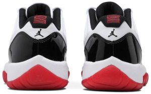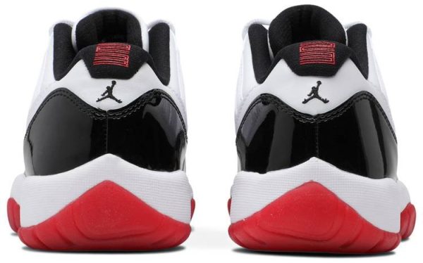 Air Jordan 11 Retro Low ‘Concord-Bred’ features a design that combines two of the model’s most iconic OG colorways. The white leather upper is reminiscent of the ‘Concord’ Jordan 11 . highlighted by tonal webbing lace loops and black patent leather overlay. Meanwhile . the pairing of the white foam midsole with a semi-translucent red rubber outsole immediately calls to mind the ‘Bred’ colorway.