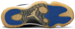 This Air Jordan 11 Retro is a new colorway from the originals in 1995 . and celebrates Michael Jordan’s performance in the movie Space Jam (1996). This colorway was worn by MJ in the movie against the Monstars . featuring a ballistic black nylon upper with the signature patent leather mudguard and Varsity Royal accents on the Jumpman logo at the heel. MJ also laced this colorway up on the court when he came back from baseball in 1995-1996 for a few games.