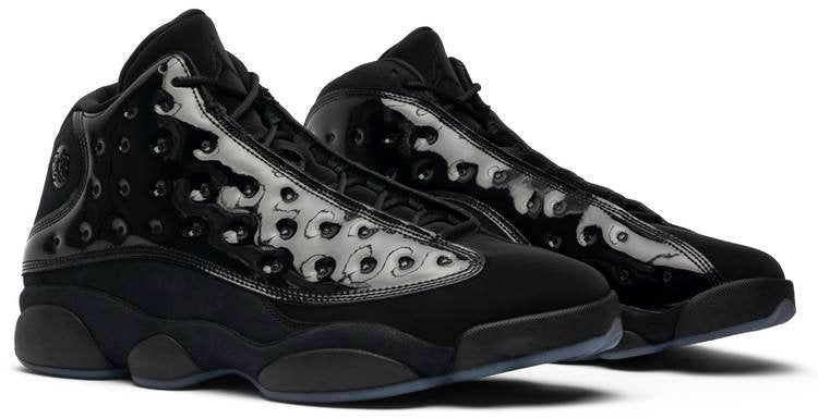 The ‘Cap and Gown’ colorway of the Air Jordan 13 renders the retro basketball sneaker with a Triple Black palette similar to the ‘Black Cat’ model. Featuring a patent leather and nubuck formation on the upper . the outsole maintains the panther’s-paw-inspired design. The shoe disguises the signature hologram icon next to the collar with a tonal finish for a covert look.
