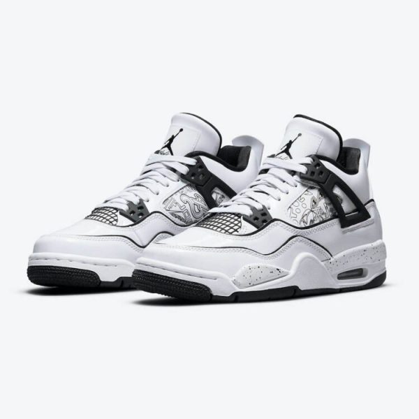 The Air Jordan 4 follows directly in the footsteps of the Air Jordan 3 by combining on-court performance with off-court style. With the AJ 4 Retro DIY . Jordan Brand wants to encourage the younger community of Jordan fans to get involved and get creative. Thus . the white upper of the sneaker can be painted as desired to create unique designs. The design is rounded off by black contours and the characteristic Jordan logos