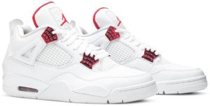 Launching as part of a four-piece Metallic Pack . the Air Jordan 4 Retro ‘Red Metallic’ treats the classic silhouette to a simple two-tone color scheme. The upper is constructed from white leather . complete with standard details that include quarter-panel netting and a visible Air sole unit at the heel. Contrasting pops of University Red appear on the molded eyelets . interior tongue and Jumpman branding hits at the heel and woven tongue tag.