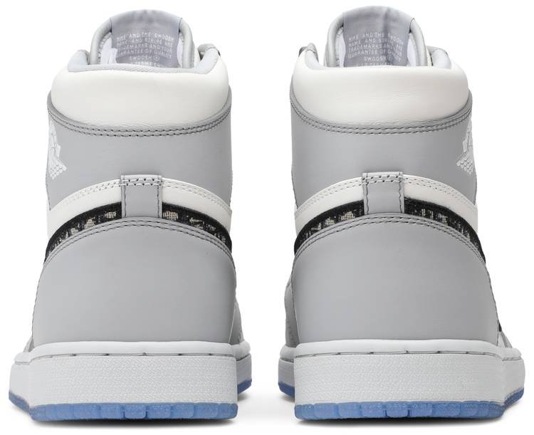 Bridging the gap between street-ready sportswear and luxury fashion . the Dior x Air Jordan 1 High is drawn from a larger collaboration that spans footwear . apparel and accessories. Designer Kim Jones’ take on the iconic sneaker makes use of a white and grey upper constructed from Italian leather with hand-painted edges. Dual branding hits take the form of a Dior woven tongue tag . a Nike Swoosh in Dior Oblique jacquard . and icy outsoles revealing a Dior and Dior Wings logo on each shoe.