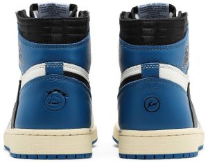 The Fragment Design x Travis Scott x Air Jordan 1 Retro High brings together two of Jordan Brand’s most influential creative partners. The resulting design finds the foundational sneaker dressed in white tumbled leather with Scott’s signature inverted Swoosh in contrasting black leather. Similar to the rapper’s AJ1 collaboration from 2019 . a hidden pouch is built into the black nylon collar. Contrasting royal blue hits settle on the on the toe box . collar flap and heel overlay. The latter is stamped with Fragment’s lightning bolt logo on the right shoe and La Flame’s Cactus Jack smiley face on the left. Additional branding elements include a standard Nike Air woven tongue tag . a secondary Cactus Jack tongue tag and a classic Jordan Wings logo imprinted on the lateral ankle. A rubber cupsole with pre-yellowed sidewalls lend the shoe a vintage aesthetic.